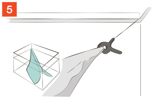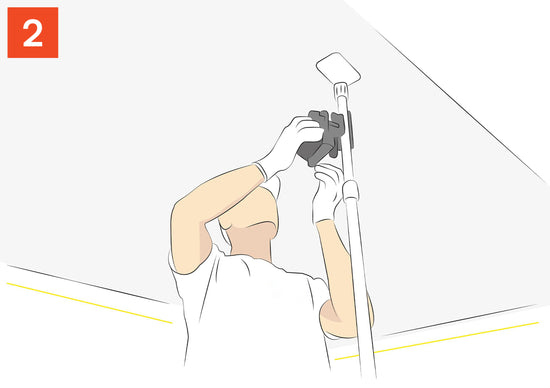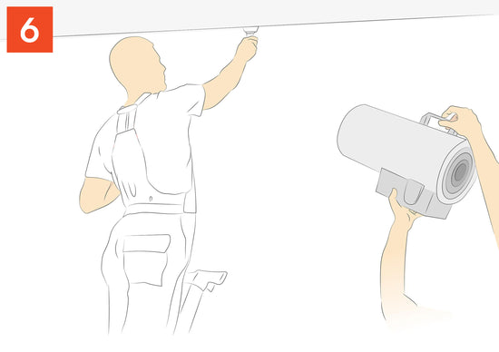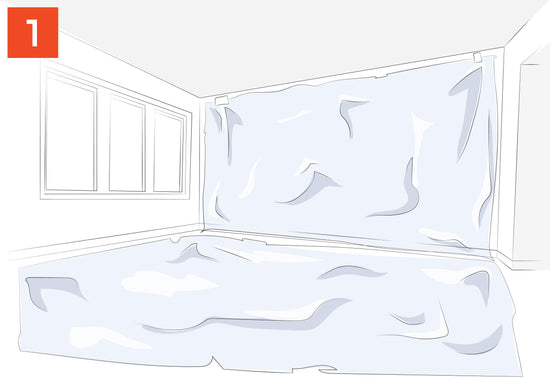 The canvas cut to size is unfolded indoors and fixed first in the corners of the room.